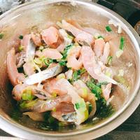 - 準備 アジは皮と気になる小骨を除いておきます。