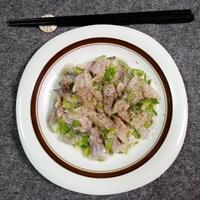 - 2 ボウルにねぎ塩レモンだれの材料を入れて混ぜます。