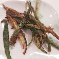オクラはを揚げるときに、油はねのための火傷に注意してください。カリッとしたらバットに移してください。