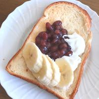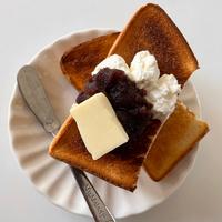 - 2 有塩バターを塗り、ゆであずきをのせます。