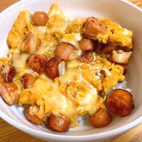 ふわふわの卵とウインナーがおいしい簡単な卵丼です。具材を切って後は卵と合わせるだけです。チーズの風味が食欲をそそりごはんがモリモリ進みますよ。昼食や時間がない時などにぜひお試し下さい。