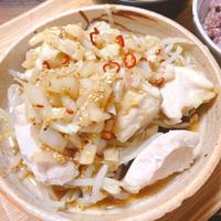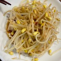 鶏肉を豆もやしとあえました。