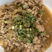 - 3 豚ひき肉に火が通ったら(A)を加えて中火で炒めます。豚ひき肉に火が通り、全体に味がなじんだら火を止めます。