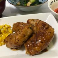 - 4 両面に焼き色がついたら、キッチンペーパーで余分な油を拭き取り、(A)を加えてとろみが付くまで煮からめたら完成です。