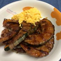 かぼちゃはあらかじめレンチンしておき、冷めてから肉を巻きました。焼き肉のタレで時短。