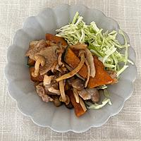 時短で巻かずに。かぼちゃ、豚ロース、しめじを炒めて作りました。おいしかったです😊