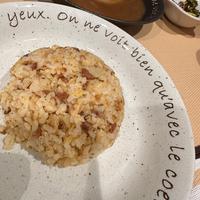 - 5 ごはんがよくほぐれたら3を戻し入れ、2を加えて全体をよく絡めます。