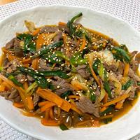 コチュジャンのピリ辛さと醤油の旨味が絶妙に絡み合う本格的な味わいです。牛肉はもちろん豚肉でも美味しく、玉ねぎ、人参、ニラなどの野菜もたっぷり入って栄養バランスも◎。野菜は好みでパプリカやピーマン、エリンギなども相性抜群です。ジューシーな肉の旨味と野菜の甘みが溶け合い、ご飯が進む一品に仕上がります。下味をつけることでより深い味わいになり、辛さは好みで調整できます。