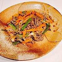 にんじんとニラと牛こま切れ肉で作りました!ご飯が進む美味しい味です!