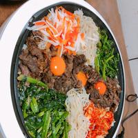 ホットプレートで楽しく作れる本格派ビビンバです。プルコギ風の味付けたお肉とナムルの彩り豊かな具材を、熱々のプレートの上で豪快に混ぜ合わせて。ジュージューと音を立てながら、底からカリカリとした香ばしいおこげが出来上がります。コチュジャンを加えれば辛さと旨みが増して、より本格的な味わいに。家族や友人とワイワイ楽しめる、パーティー気分満点の一品です。
