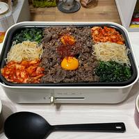 ホットプレートで目にも鮮やかなビビンバの紹介です。ご家族はもちろん、ホームパーティーにも最適ですよ。ナムルの種類や量を増やせば、より目でも楽しいビビンバになります。ホットプレート以外にも、大きめのスキレットやフライパンでもお作りいただけます。ぜひおためしください。