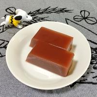 分量通りに作ると、味薄め、少し固めの羊羹ができ、羊羹と言うよりあんこのゼリーという感じがしました。