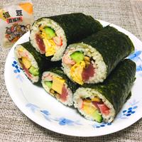 家族みんな喜んでくれました♪きゃうり、サーモン、マグロ、卵焼き、大葉をいれました(*^^*)