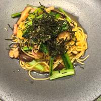 しめじと小松菜にわさびを入れて、和風スパゲティに仕上げてみました。しめじと小松菜の歯応えに、わさびの辛味が絡んだスパゲティとよく合います。お好みの野菜を入れるとアレンジが広がります。ぜひお試しくださいね。