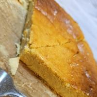 グラニュー糖がなかったのでてんさい糖で代用。長方形の型に流し込んで焼いたら卵焼きみたいになりました笑 170℃40分だとまだ竹串に生地がついてきてしまい、更に20分焼きました。だけど焼き色は付かなかった〜。味は素朴なチーズケーキ?という感じで卵感が少し強く思いました。シンプルなレシピだからなのか、ケーキ屋さんのベイクドチーズケーキを想像して食べてしまうとぜんぜん違います。もう少し甘さも欲しかったので砂糖をプラスしてもいいかな。