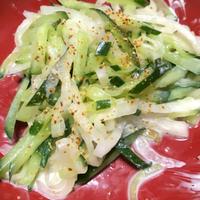 きゅうりと大根の千切りを、マヨネーズとしょうゆ、一味唐辛子で和えただけのとってもシンプルで簡単な和え物のご紹介です。 簡単なのにクセになる組み合わせのドレッシングで、付け合せにはもちろん、おつまみとしてもオススメですよ。