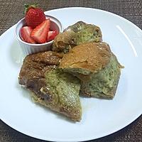 6枚切り食パンを使用し、少し牛乳を混ぜて作りました。抹茶を用意することなく、抹茶味のフレンチトーストが気軽に作れるので良いですね。