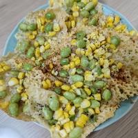 パリパリ・カリカリに焼き上がったチーズの食感が魅力的な一品です。枝豆とコーンの2色が見た目にも鮮やかで、チーズとの相性も抜群。温かいうちはとろ~りとろけて香ばしい香りが広がります。材料が少なく手軽に作れるので、おつまみやおやつにぴったり。チーズ好きにはたまらない美味しさで、チーズが苦手な方でも楽しめる工夫された一品です。ただし、焼き加減には注意が必要です。