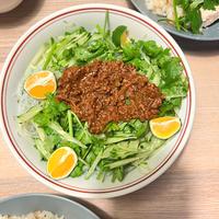 ひき肉はジャージャー麺で作った肉をそのまま乗せました。