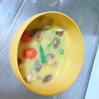 - 3 鍋に1、2、水、鶏ガラスープの素を入れ、弱火で10分程煮ます。