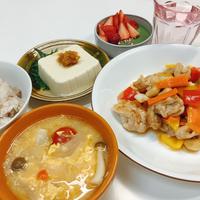 塩分控えめのサンラータン風溶き卵汁のご紹介です。お酢の酸味とラー油の辛味と香味を効かせたスープに仕上がりました。きのこやトマトの旨みも加わり、塩気が少なめでもおいしくお召し上がりいただけますよ。ぜひ、作ってみてくださいね。