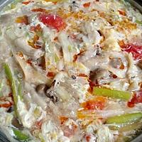 - 5 ごま油、ラー油を加えてひと混ぜし、火から下ろして器に盛り付けたら完成です。
