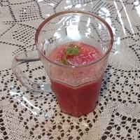 スイカ多めで氷なし。スッキリ美味しい。半分は牛乳を足していただきました(´,,•ω•,,)♡︎