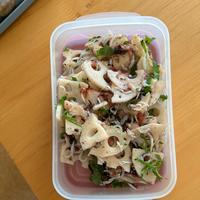 しらすを使って作りました。レンコンがシャキシャキで梅としらすと合います。大葉が効いていて美味しかったです。