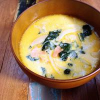 糖質9.5g/372kcal(1人分) サーモンの豆乳チャウダーのレシピのご紹介です。食べ応えのあるスープなので、朝食にもおすすめです。具材をお好みで変えてもおいしく召し上がれますよ。 ※この糖質量・カロリーは調理法等を考慮した栄養計算を行っているため、通常のカロリー欄に記載されているクラシル独自計算結果と若干の差がある場合がございます。ご了承ください。