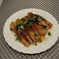 - 3 中火で熱したフライパンにごま油をひき、2をのせて焼き、両面に焼き色を付けます。(A)を加えて煮絡めます。とろみがついてきたら火から下ろし、爪楊枝を外します。
