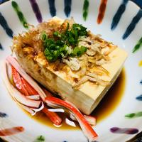 今日は夕方まで断水でおかずを作る元気が無かったので湯豆腐にしました。木綿豆腐に小海老とカニカマとカツオ節を追加して乗せただけですがすごくおいしかったです!