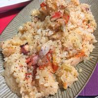 - 5 1、2、3を入れ軽く混ぜ、炊飯します。炊きあがったら、有塩バターを入れ優しく混ぜ合わせます。