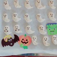 可愛く出来上がりました!オバケ型にするのが難しかったです。あとは部屋の温度の状態でメレンゲの感じが変わってしまうところも難しかったです。