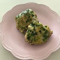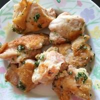 お肉に粉をつけすぎてしまい、油多めで焼きました(そして余分な油出てこず、全て私の脂肪に笑)青のりが無くて、揉み海苔を細かくしてまぶしました。海苔とバターってすごく美味しいのですね!鶏肉の下準備も簡単だし、これは定番にしたいです。