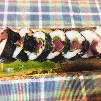 今晩のお食事に、土佐巻きはいかがでしょうか。香ばしいカツオのたたきに、香りの良い香味野菜をたっぷり入れたのり巻きは、お酒のおつまみにもぴったりの一品ですよ。とても簡単に作れるので、ぜひお試しくださいね。