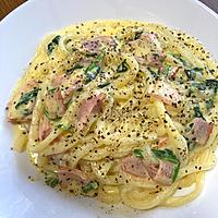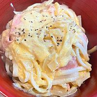 生クリームはないので全量牛乳、卵は卵白ごととズボラに作りましたが、驚くほど美味しく出来て感動です。パスタは茹でる工程が面倒なので、レンチンで速攻出来上がる冷凍うどんにしましたが、パスタでも作ってみたくなりました!カルボナーラがこんなに簡単に出来るなんて、このレシピに出会えて良かったです。うまうま(◜ω◝*