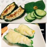 美味しいー( *´꒳`* )ビールのアテにピーマン肉詰め食べたくて。他のレシピはびっくりするくらいカロリー高いからコレにした!鶏ひき肉もむね肉のみ!オーブントースターの加減に迷ったけど色々試しながらで良い感じになった!やわやわジューシーで旨味もあって美味しかったけど最後の七味唐辛子を振ってみて必要性をすごく感じた!一味じゃなくて、山椒だとかの風味が蛋白な具材にすごく合ってた~感動( *´꒳`* )