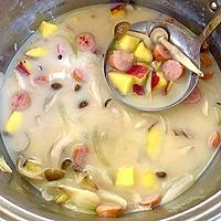 牛乳とコンソメを使用しました。炒めた具材に小麦粉をまぶし、とろみをつけると美味しかったです。さつまいもは先にレンチンしておいて、3分の1くらい潰す方が甘みが出て良いかもしれません^_^