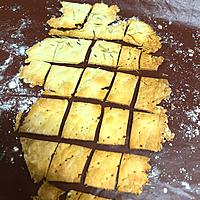- 2 1を棒状にまとめ、クッキングシートの上で厚さ1mm、20×20cmに伸ばします。