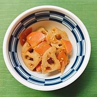 れんこんのシャキシャキ感を活かしたきんぴらです。にんじんも加えて色合いも華やかにしているので、食卓に添えると見た目のアクセントになります。きんぴらというと一番にごぼうが思い浮かぶかもしれませんが、れんこんも食感がよいのでおすすめです。ぜひ作ってみてくださいね。