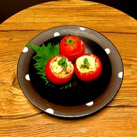 - 1 トマトは上2cmほどを切りおとし、中身をくり抜きます。