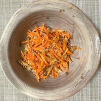 にんじんとミョウガを合わせてごまマヨネーズで和えてみました。にんじんの素材そのもののの旨味に、ミョウガの食感と風味がごまマヨネーズとよく合います。何かもう一品欲しいときに簡単に出来ますので、是非お試しくださいね、