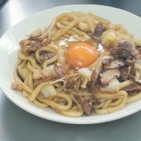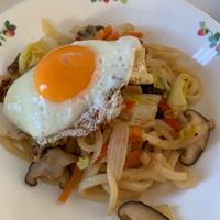 すき焼き風がおいしい、焼うどんのご紹介です。野菜がたっぷり入っているので、おなかも大満足の一品ですよ。半熟卵を絡めて召し上がってくださいね。ご家庭でもお手軽にお作りいただけます。とても簡単なので、この機会にぜひ作ってみてくださいね。