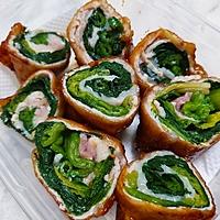 ほうれん草を間違って横向きで巻いてしまいました😢くるくるの見た目にはなりませんでしたが、美味しかったです。