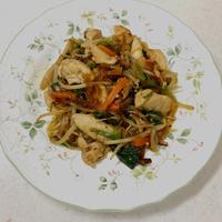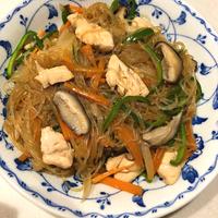 春雨は戻してから使用。70gだとかなり多かったので減らして投入しました。ササミを炒める時にお酒を少し入れたので柔らかくなって美味しかったです。