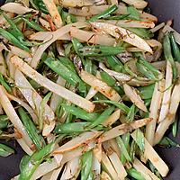 - 1 新じゃがいもは皮付きのまま千切りにし、いんげんは斜めの細切り、ニンニクはみじん切りにします。