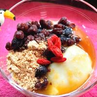 - 3 器に1を適量取り2のシロップをかけてお好みでクコの実を飾り完成です。