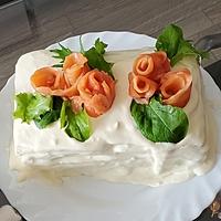 - 4 サンドイッチの周りに1を塗り、スモークサーモンとベビーリーフを飾ったら完成です。