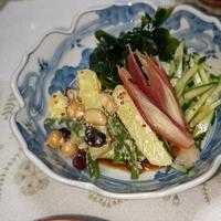 - 4 ボウルに3、ミックスビーンズ、(A)を入れ、全体をよく混ぜ合わせ、器に盛りつけて出来上がりです。