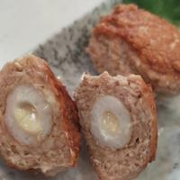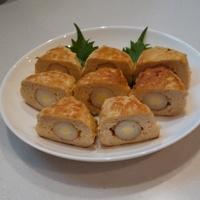 ちくわにチーズを詰め、鶏つくねに包んで焼き上げました。ちくわとチーズの旨味と鶏つくねがよく合います。しっかり味が付いてますので、そのままでも美味しく頂けますが、お好みでポン酢をかけても美味しく頂けます。是非お試しくださいね。